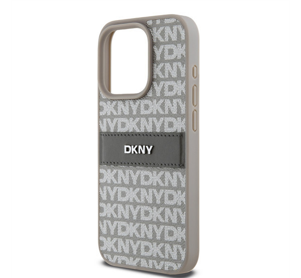 DKNY PU Leather Repeat Pattern Tonal Stripe iPhone 14 Pro hátlap tok, bézs