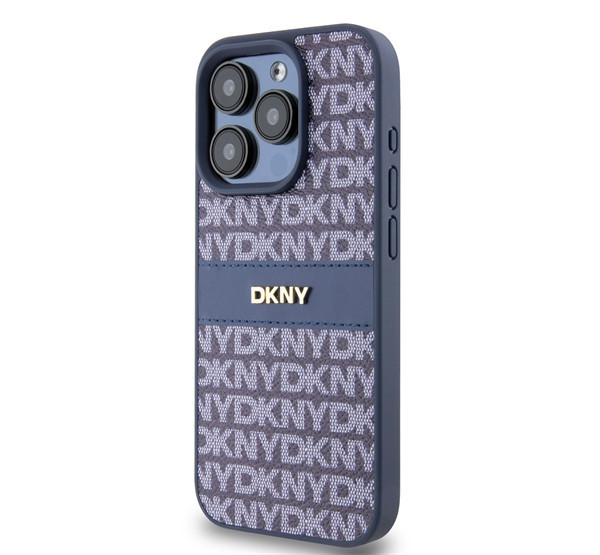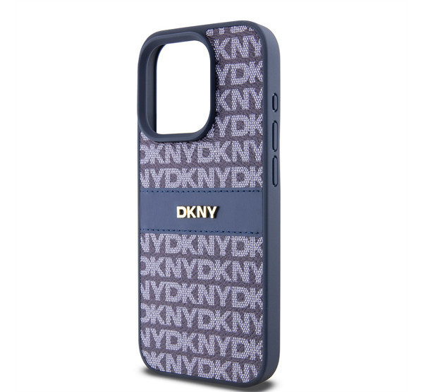 DKNY PU Leather Repeat Pattern Tonal Stripe iPhone 14 Pro hátlap tok, kék