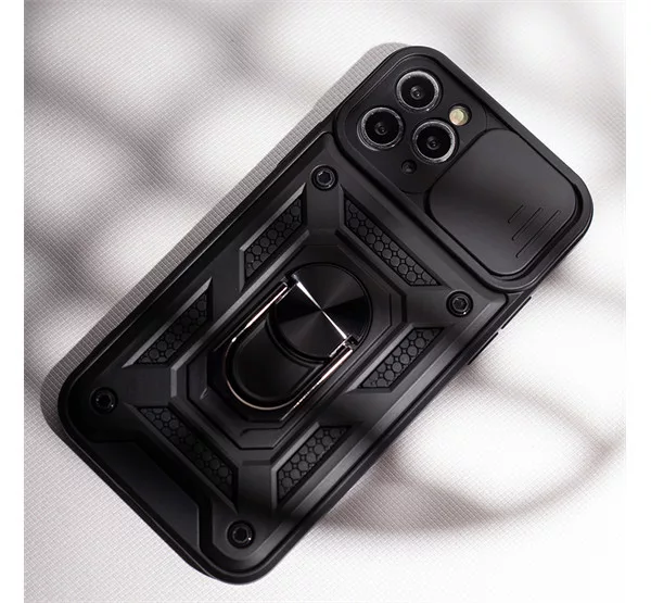 A Defender Slide tok egy több rétegű, megerősített védőtok. PC és TPU anyagokból készült, beépített alumínium gyűrűvel és mozgatható kameravédő fedéllel rendelkezik, amely védi a lencséket és biztosítja a magánszférát. Magasabb élei védik a képernyőt a sérülésektől. Megfelelő kivágásokkal rendelkezik a portok számára, és dombornyomással a gombokhoz, valamint kompatibilis mágneses tartókkal.