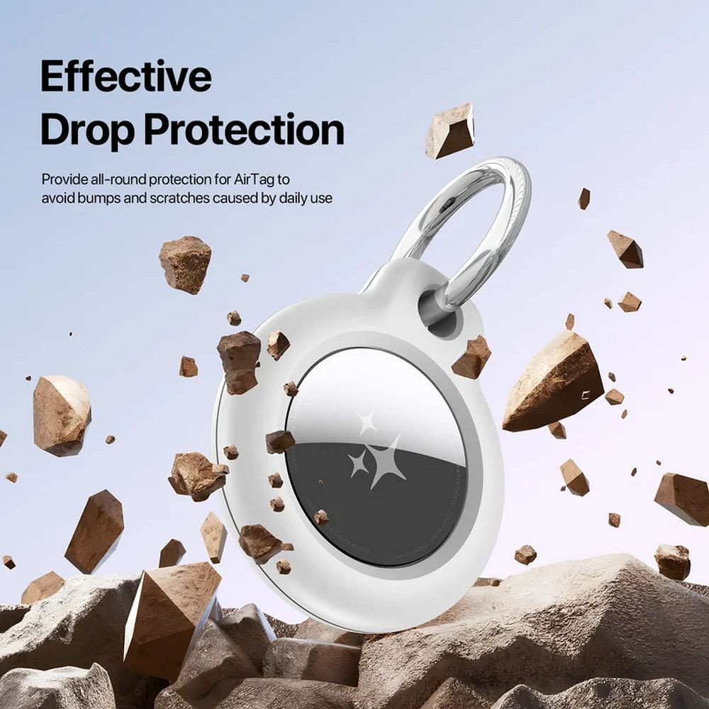 A rugalmas szilikonból készült tok ellenáll a sérüléseknek, és garantálja az AirTag egyszerű felszerelését. A mellékelt karabinernek köszönhetően a tokot a helymeghatározóval bárhová fel lehet akasztani, olyan tárgyakra rögzíthető, amelyeket nem szeretnénk elveszíteni.