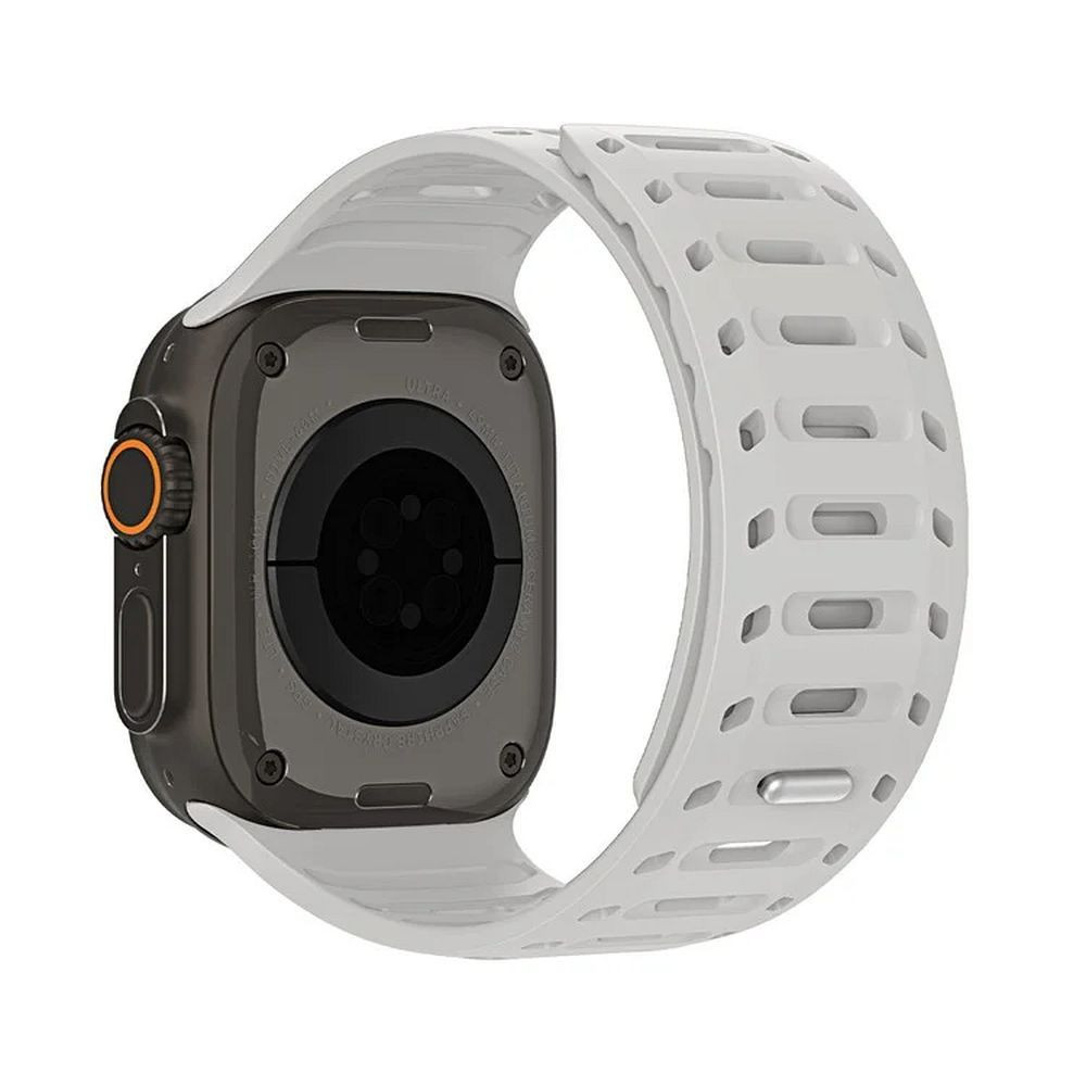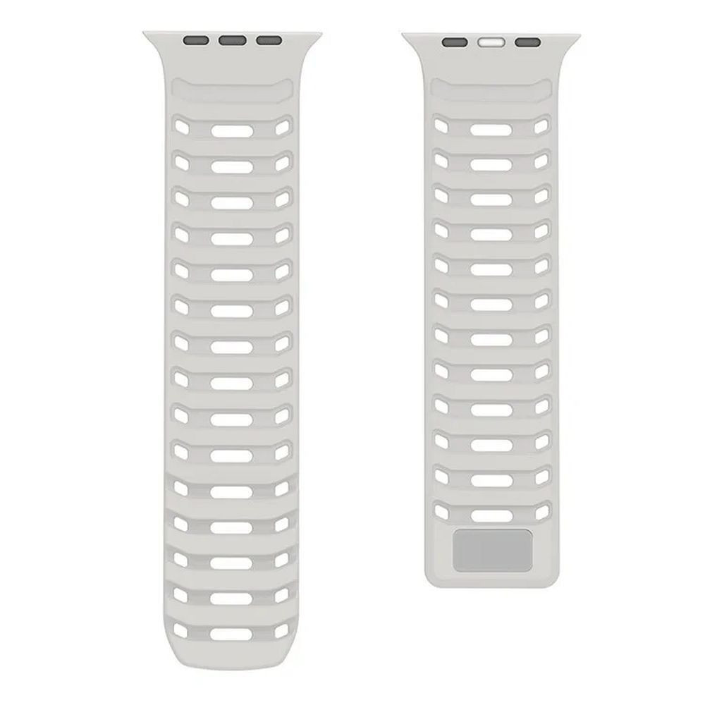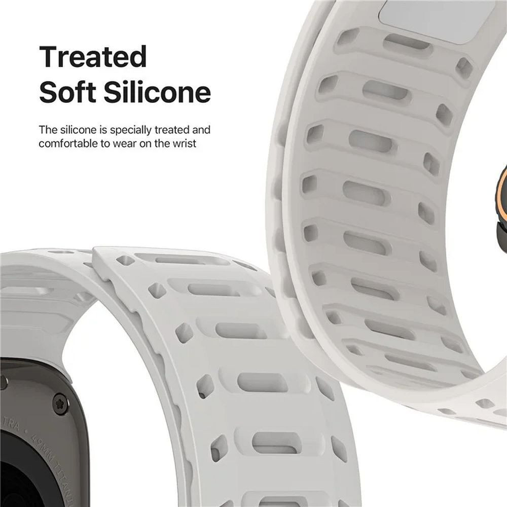 Elasztikus szilikonból készült, beépített mágnesekkel, amelyek biztonságot és biztos rögzítést garantálnak. Fontos, hogy a szíj mosható. Ennek köszönhetően az kiegészítő mindig tiszta és friss lesz, függetlenül attól, hogy milyen intenzíven használják.