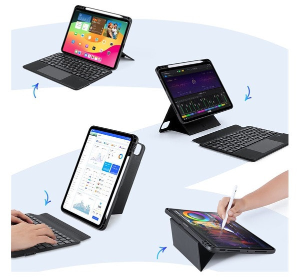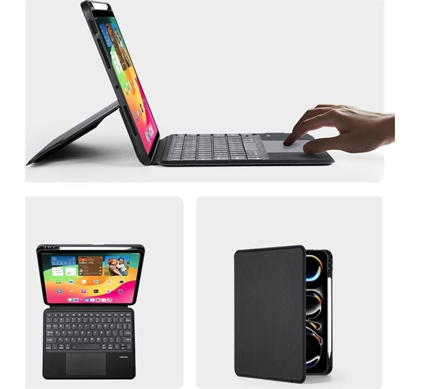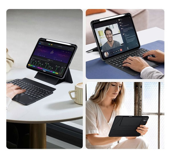 Dux Ducis DK iPad Pro 11 (2024 / 2025) kihajtható tok vezeték nélküli billentyűzettel, fekete
