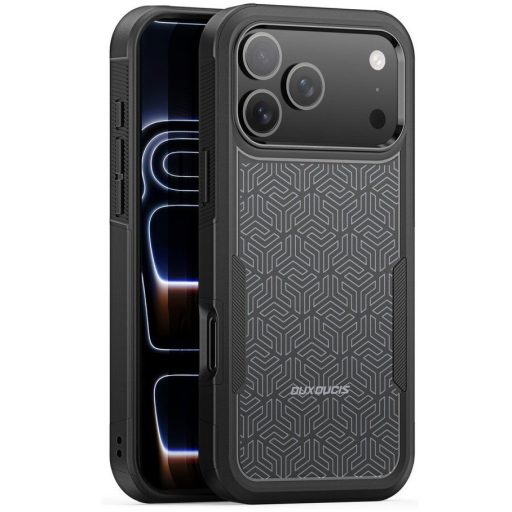 Dux Ducis SHLD Apple iPhone 17 Pro Max hátlap tok megerősített szélekkel, kameravédelemmel, fekete (háromszög minta)
