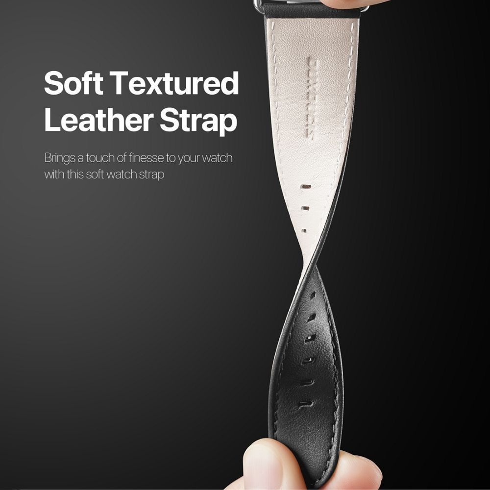 Az Apple Watch bőr szíj elegánsan öleli körül a csuklóját, páratlan viselési élményt nyújtva. Egyedülálló kialakításának köszönhetően az óra fizikai aktivitás és hivatalos események során egyaránt jól mutat.