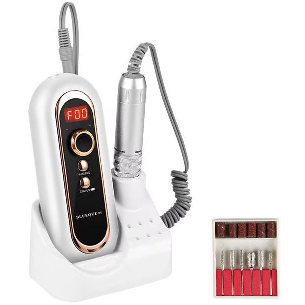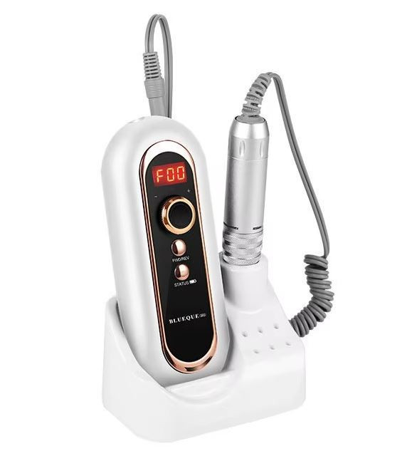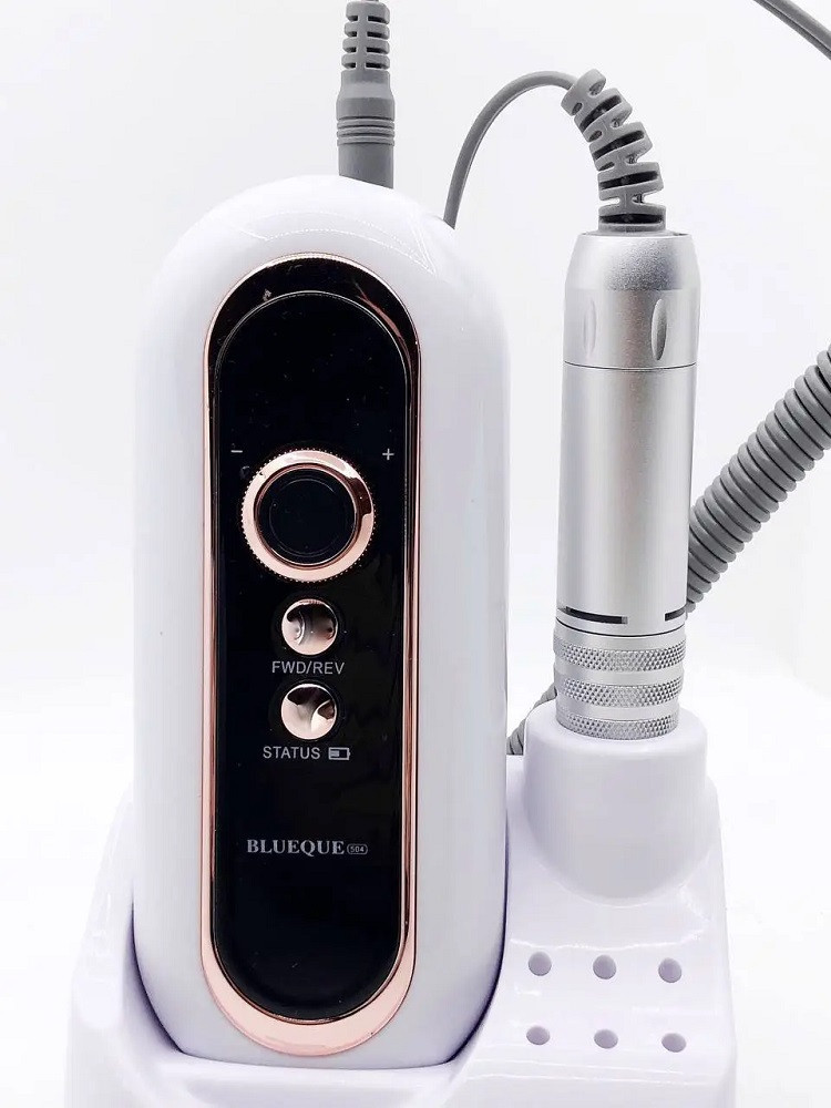 A Blueque BQ-504 hordozható elektromos körömcsiszoló gépünkkel akár otthon is könnyedén formázhatod körmeidet, mintha csak egy szalonban lennél. Akkumulátorral működik, így a felhasználó önállóan is működtetheti anélkül, hogy a készüléket a hálózathoz kellene csatlakoztatni. A modell teljesítménye 40 W, maximális sebessége pedig 30 000 fordulat/perc. Alkalmas otthoni és szalonhasználatra, valamint kiállításokon, mesterkurzusokon és versenyeken való munkavégzésre stb. A készülék hátulján található csipesszel pedig könnyedén övre vagy zsebre rögzíthető.