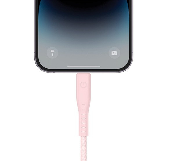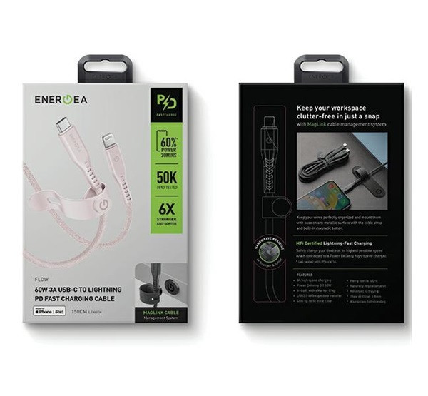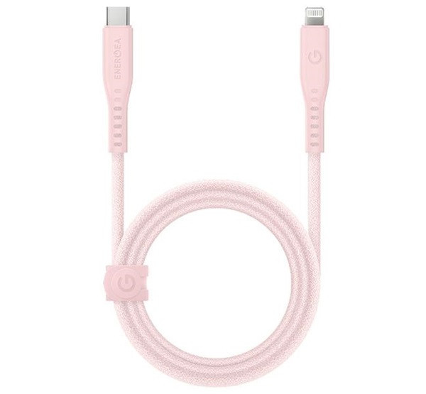 Energea Flow C94 USB-C / Lightning MFI szövet gyorstöltő- és adatkábel, 1.5m, 60W, 3A, rózsaszín