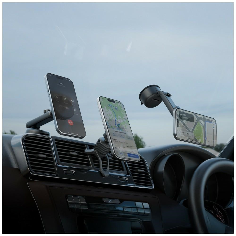 Az Energea MagDrive lenyűgöző mágneses erejének köszönhetően biztosítja a telefon erős és biztonságos rögzítését, akár tok nélkül, akár MagSafe tokban. A mágnes akár 1,5 kg-os telefont is képes megtartani. Ezen felül ez a tartó univerzális rögzítési rendszerrel rendelkezik, amely lehetővé teszi a műszerfalra, a szélvédőre vagy a szellőzőnyílásra való felszerelést. Különböző helyeken használhatja, igényeihez igazítva.