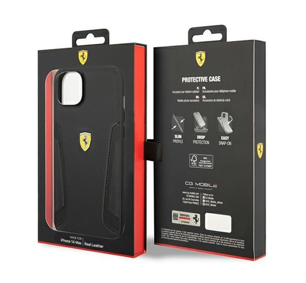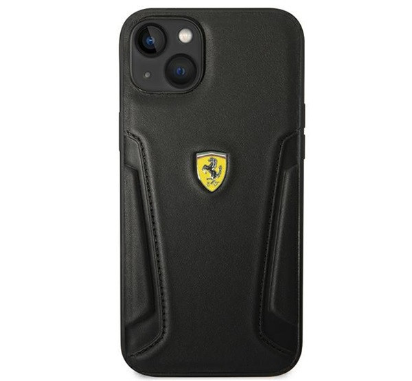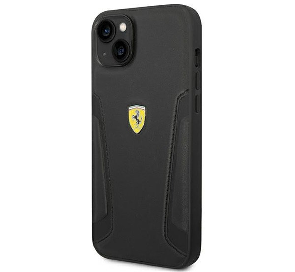 Ferrari Leather Stamp Sides Apple iPhone 14 Plus bőr hátlap tok, fekete