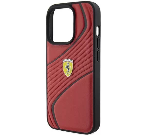 Ferrari Twist Metal Logo iPhone 15 Pro kemény hátlap tok, piros FEHCP15LPTWR