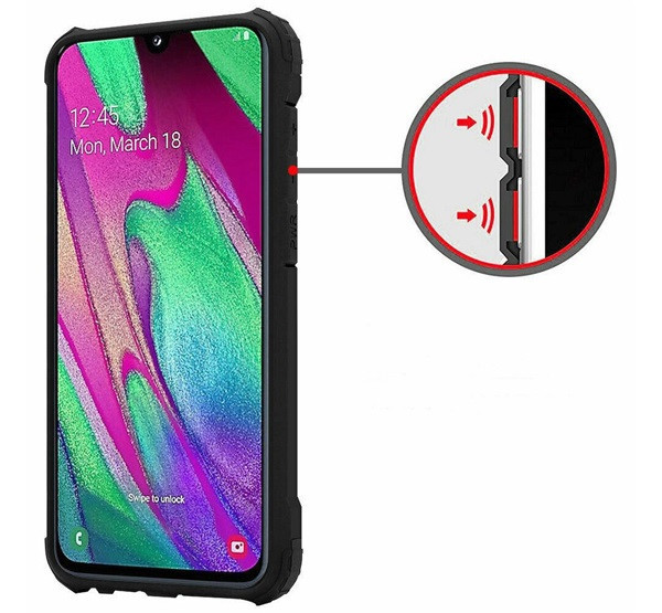 A belső pókhálós szerkezet elnyeli az ütéseket, az enyhén kiálló élek pedig védik a képernyőt és a kamerát. Az Air Cushion technológia viszont extrém helyzetekben is kiváló munkát végez, befolyásolva a párnázást leejtések és ütközések során.