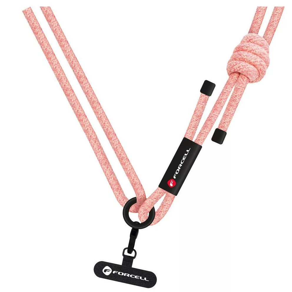 Forcell F-Design S10X165 nyakba / vállra akasztható telefontartó, állítható hossz max. 82,5cm, rózsaszín-fehér