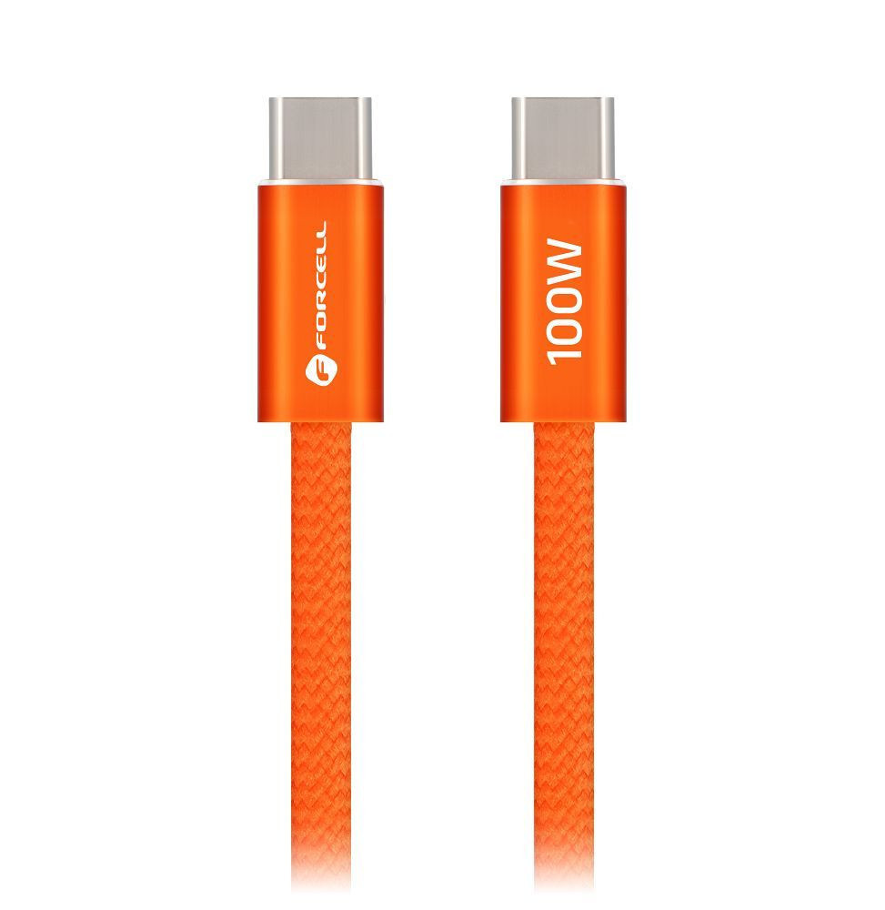 Forcell F-Energy CCFN23 USB-C-USB-C töltő-és adatkábel, QC4.0, PD 3A, 100W, 1,2m, narancs