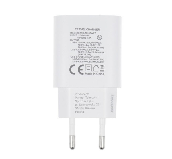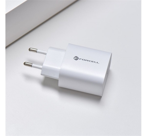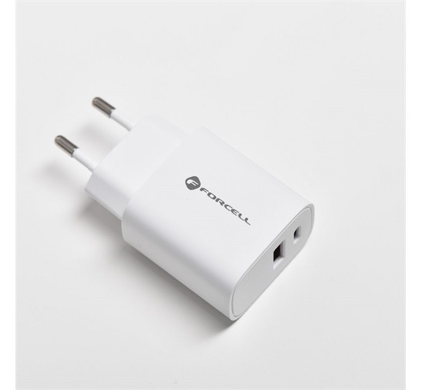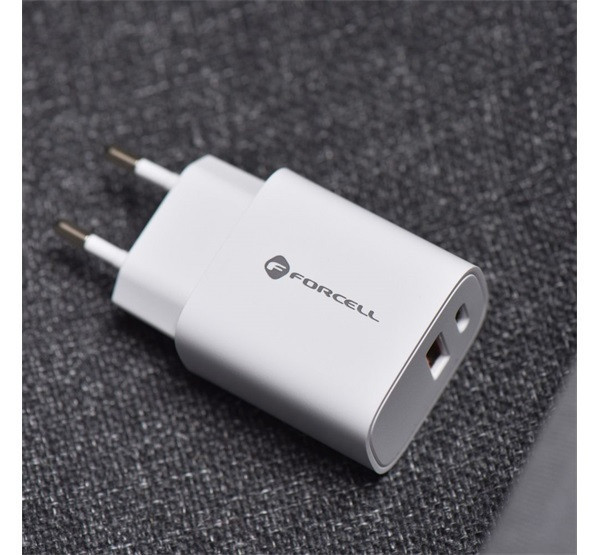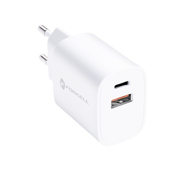 Forcell F-Energy TFK-TC-30WPD USB-C + USB-A töltő adapter, PD, QC4.0, 3A, 30W, fehér