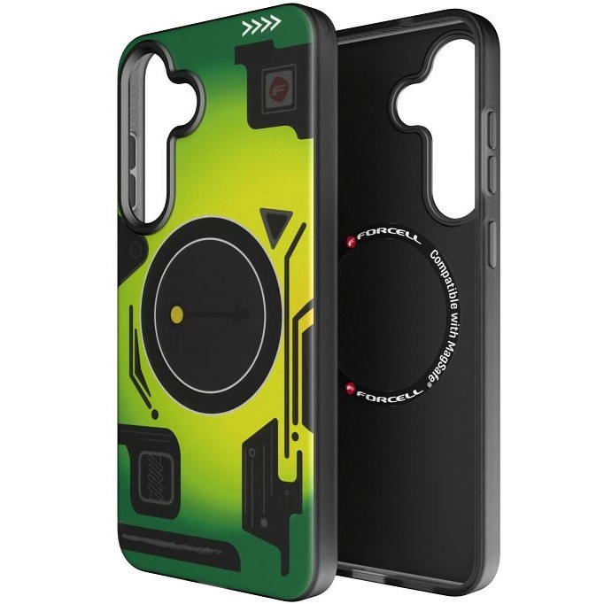 Forcell F-Protect Levels Samsung Galaxy S25 ütésálló MagSafe tok, Cyber, zöld-szürke