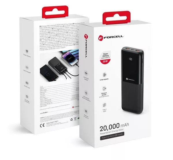 A P20k1 egy olyan power bank, amely megfelel a legmagasabb minőségi és teljesítményi követelményeknek, így Ön minden helyzetben megbízható és hatékony áramforrást élvezhet. Akár utazik, akár egyszerűen csak támogatásra van szüksége eszközeihez a mindennapi életben, az F-Energy P20k1 a válasz az Ön igényeire.