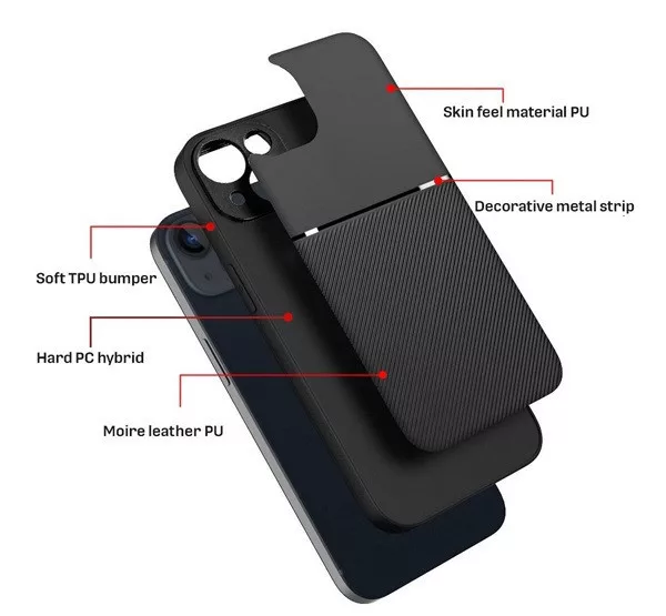 A fedél oldalai puha TPU anyagból, azaz hőre lágyuló poliuretánból készülnek. Tulajdonságai a rugalmas gumiéhoz hasonlóak, ami kényelmessé teszi a telefon elhelyezését az overlayben, és a tok tökéletesen alkalmazkodik a készülék alakjához. A tok kompatibilis a mágneses autós tartóval.