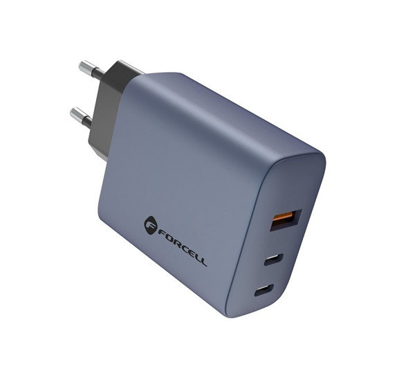 Forcell hálózati gyorstöltő 2xUSB-C + USB-A, PD + QC 4.0, 4A, GaN 65W, szürke