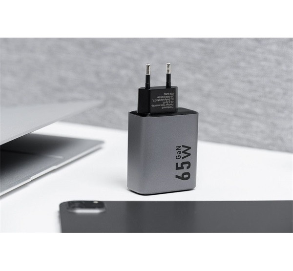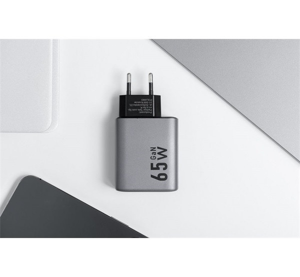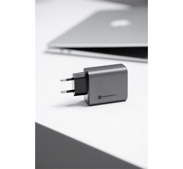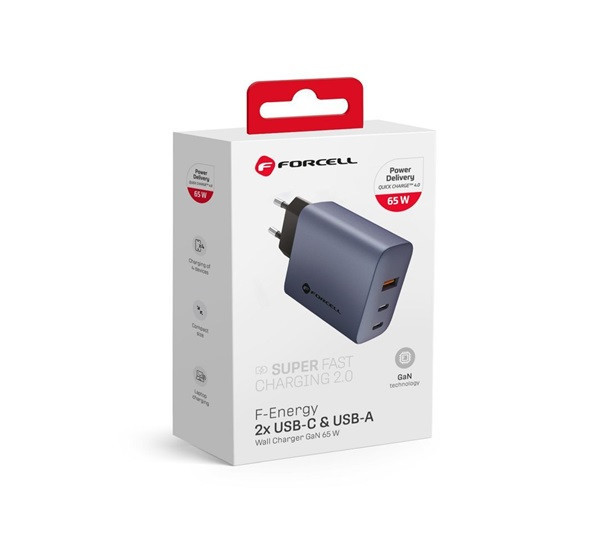 GAN technológiával készült Forcell hálózati töltő, 65 wattos teljes kimeneti teljesítménnyel. Támogatja a Quick Charge 4.0, a Power Delivery és a Super Fast Charging 2.0 töltési szabványokat, és lehetővé teszi a telefonok és táblagépek, valamint a laptopok töltését. Három porttal rendelkezik - két USB-C és egy USB-A -, és egyszerre három készüléket képes táplálni.