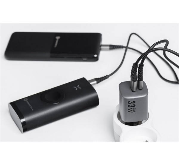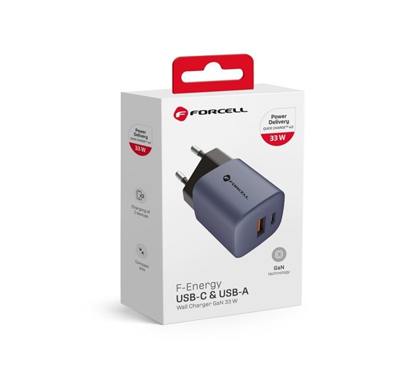 GAN technológiával készült Forcell hálózati töltő, 65 wattos teljes kimeneti teljesítménnyel. Támogatja a Quick Charge 4.0, a Power Delivery és a Super Fast Charging 2.0 töltési szabványokat, és lehetővé teszi a telefonok és táblagépek, valamint a laptopok töltését. Három porttal rendelkezik - két USB-C és egy USB-A -, és egyszerre három készüléket képes táplálni.