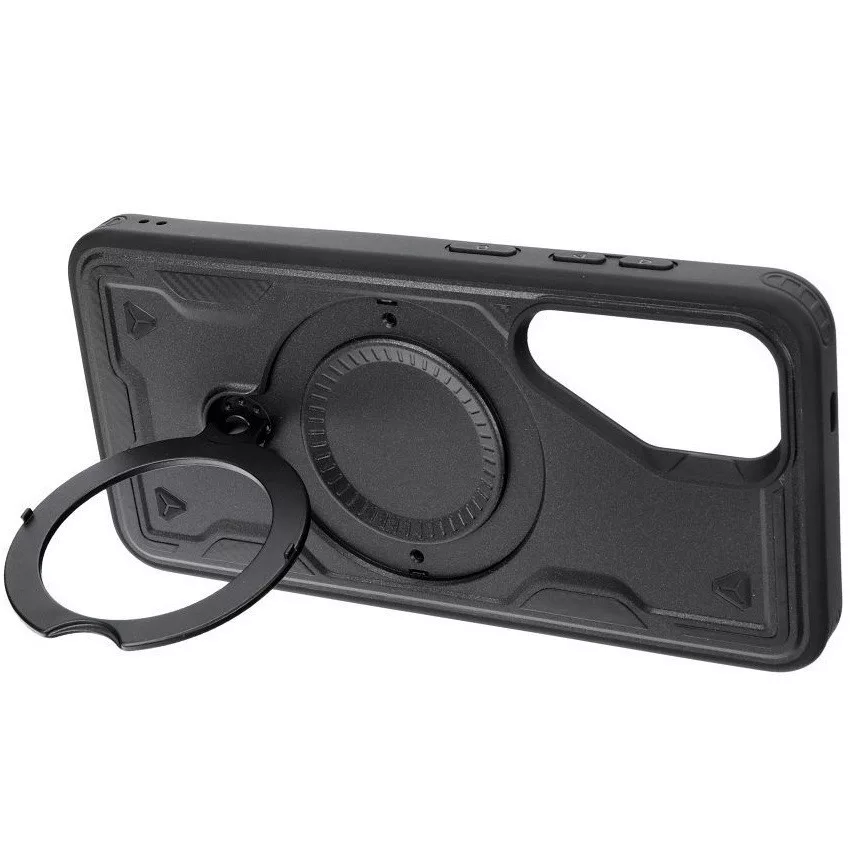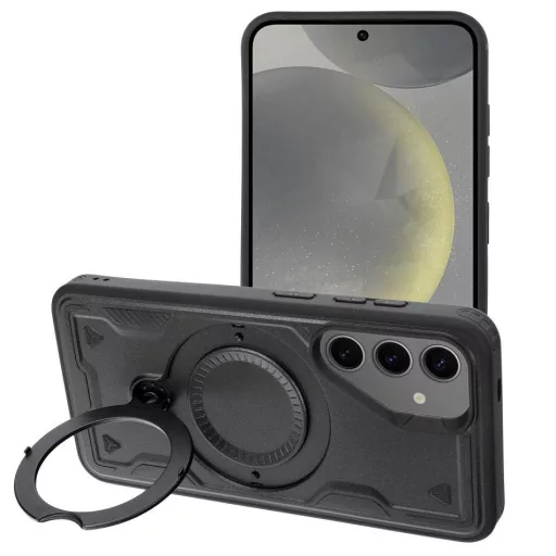 Frost Armor Samsung Galaxy S25 FE starabíró tok kitámasztóható gyűrűvel, fekete