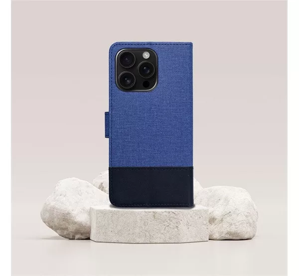 Gomma iPhone 16 Plus flip/oldalra nyíló tok kártyatartó résszel, kék