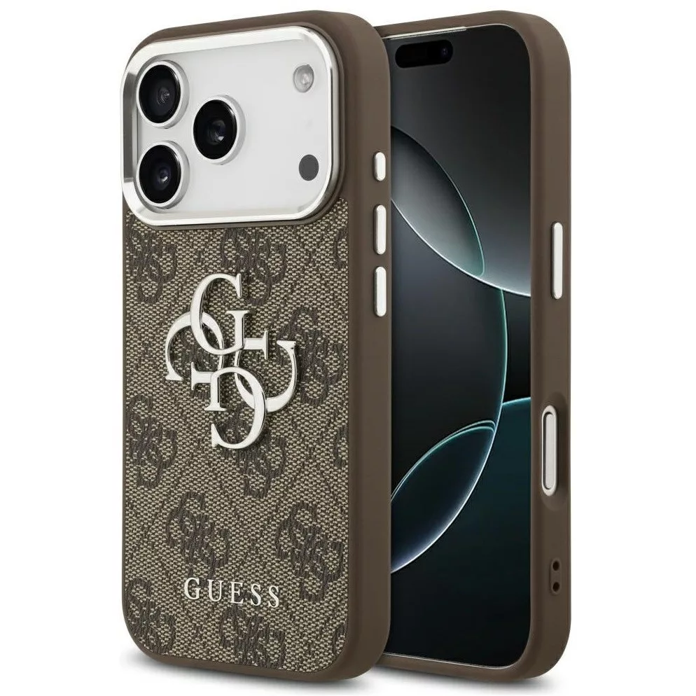 Guess 4G Big 4G Classic Logo Apple iPhone 17 Pro hátlap tok, barna-ezüst