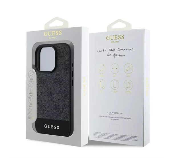 A neves Guess divatház exkluzív védőtok kollekciója új mércét állít a stílus és az elegancia terén. A tokok külső rétegét finom öko-bőr borítja, amelyet tovább díszít a kiváló minőségű 4G nyomtatás, ami kifinomult jelleget és eleganciát kölcsönöz a toknak.