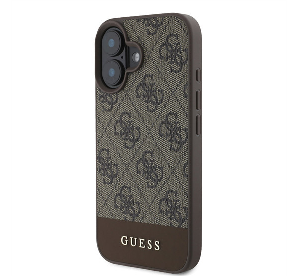Guess 4G Bottom Stripe Apple iPhone 16 hátlap tok, barna GUHCP16SG4GLBR