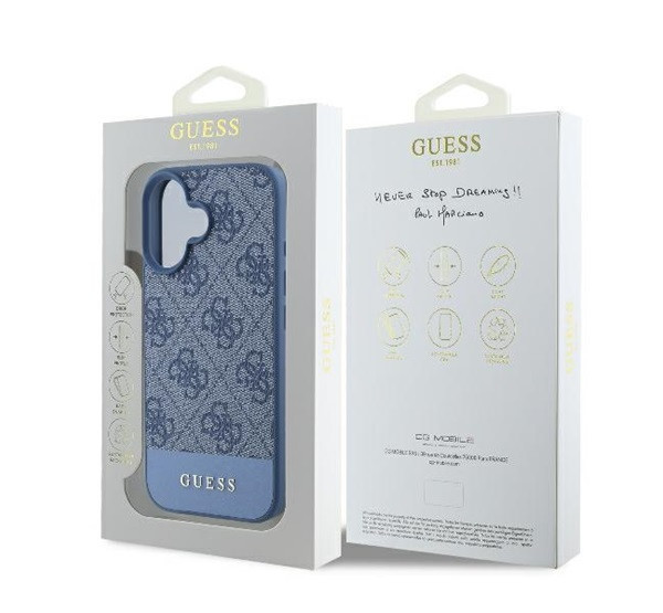 A neves Guess divatház exkluzív védőtáska-kollekciója új mércét állít fel a stílus és az elegancia terén. A tokok külső rétegét finom öko-bőr borítja, amelyet tovább díszít a kiváló minőségű 4G nyomtatás - kifinomult jelleget és stílust kölcsönözve. E kivételes kollekció megkoronázása egy gyönyörű aranyszínű, a Guess márka logójával ellátott folt, amely a tok színével megegyező díszcsíkon helyezkedik el.