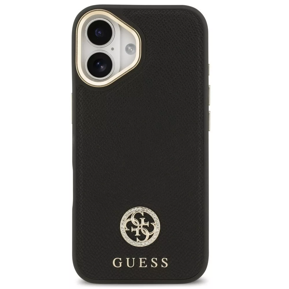 Guess 4G Grained Strass Logo Apple iPhone 17 MagSafe tok kameravédő peremmel, fekete-arany