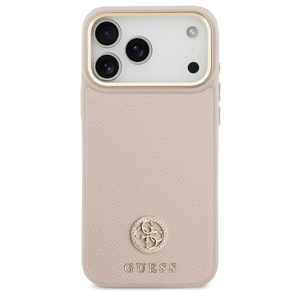 Guess 4G Grained Strass Logo Apple iPhone 17 Pro MagSafe tok kameravédő peremmel, rózsaszín-arany