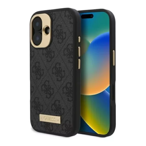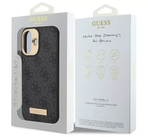 Guess 4G Logo Plate iPhone 16 MagSafe kemény hátlap tok, fekete GUHMP16SU4GPRB