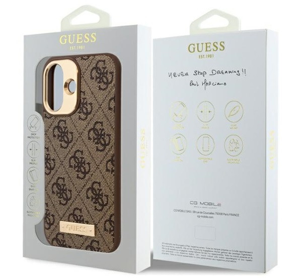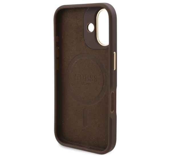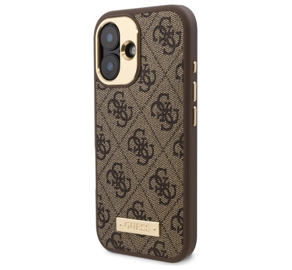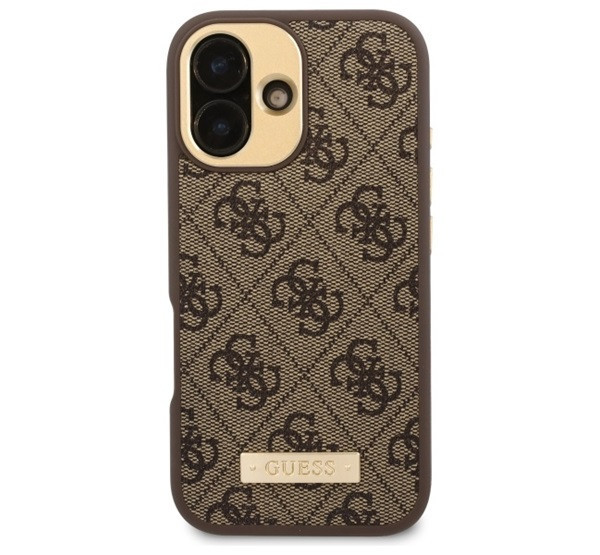 Guess 4G Logo Plate iPhone 16 Plus MagSafe kemény hátlap tok, barna GUHMP16MU4GPRK
