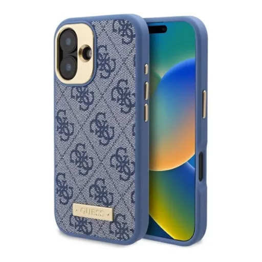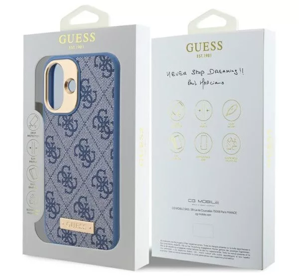 Guess 4G Logo Plate iPhone 16 Plus MagSafe kemény hátlap tok, kék GUHMP16MU4GPRB