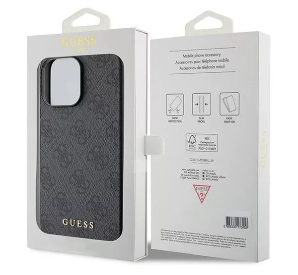 Guess 4G Metal Gold Logo Apple iPhone 15 Pro Max hátlap tok, szürke