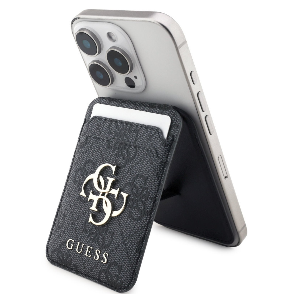 Guess 4G Metal Logo MagSafe kompatibilis kitámasztható kártyatartó, fekete Guess 4G Metal Logo MagSafe kompatibilis kitámasztható kártyatartó, fekete
