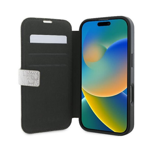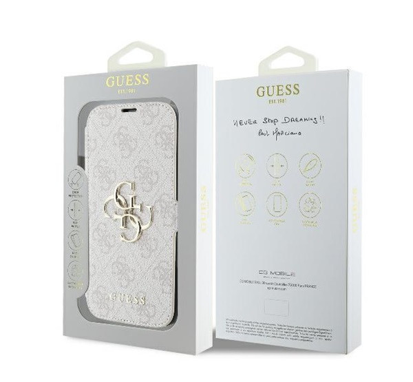 Guess 4G Metal Logo iPhone 16 Pro Max flip/oldalra nyíló tok, rózsaszín GUBKP16X4GMGPI