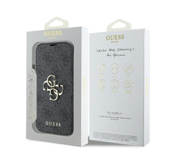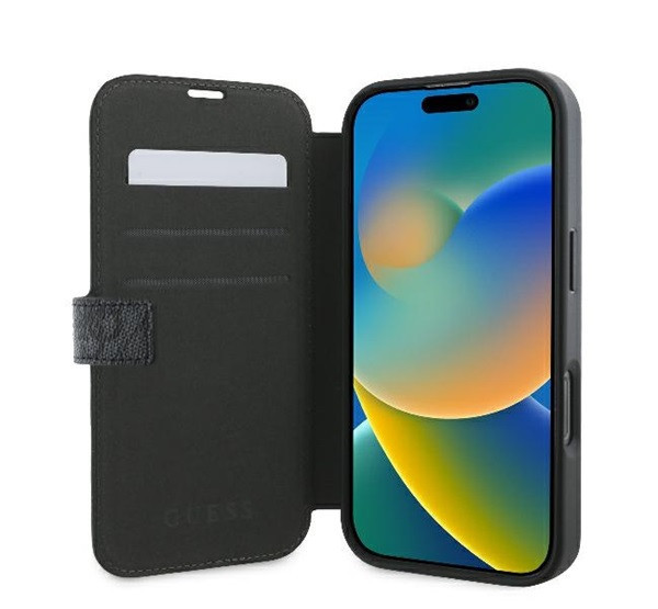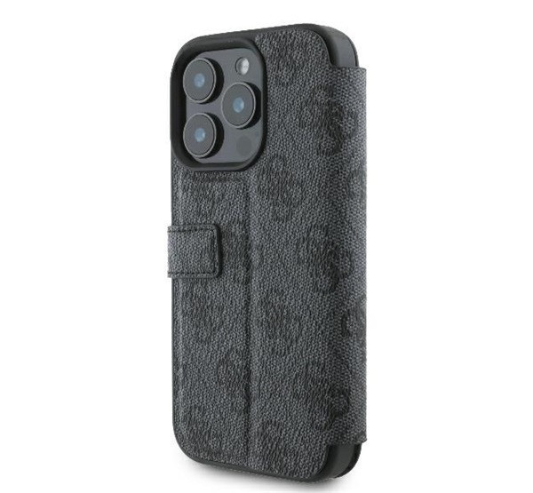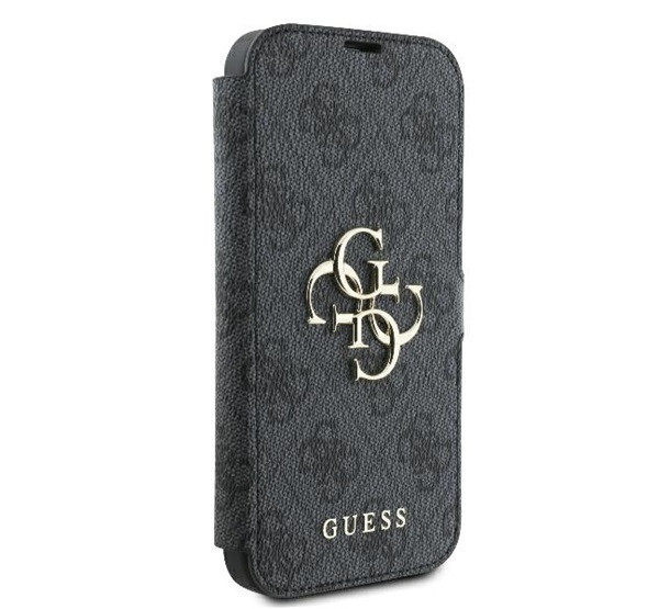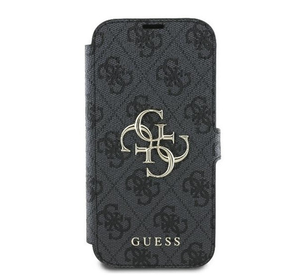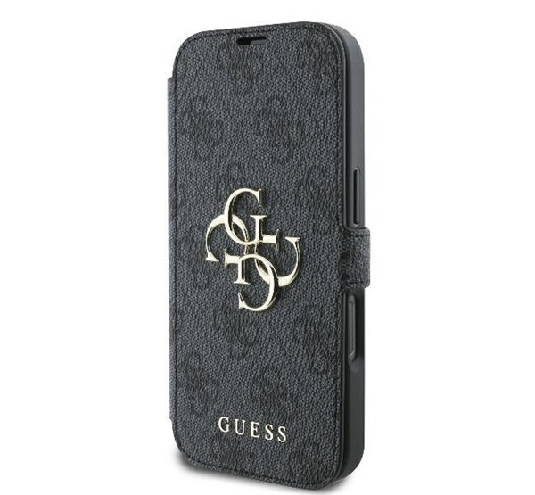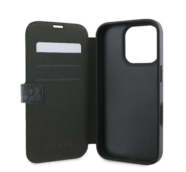 Guess 4G Metal Logo iPhone 16 Pro flip/oldalra nyíló tok, fekete GUBKP16L4GMGGR