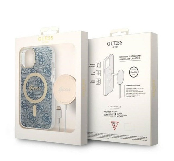 Guess 4G Print MagSafe Apple iPhone 14 Plus hátlap tok, kék + MagSafe töltő