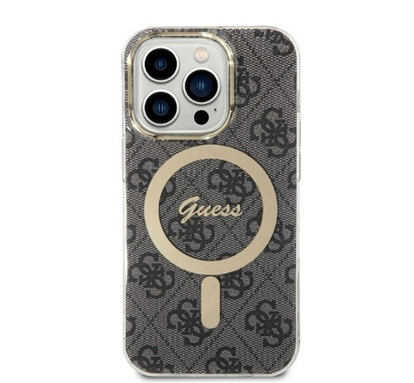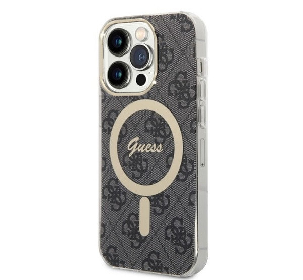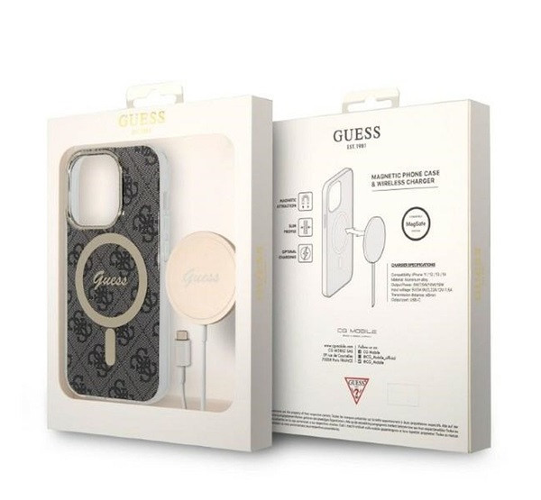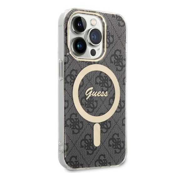 Guess 4G Print MagSafe Apple iPhone 14 Pro hátlap tok, fekete + MagSafe töltő
