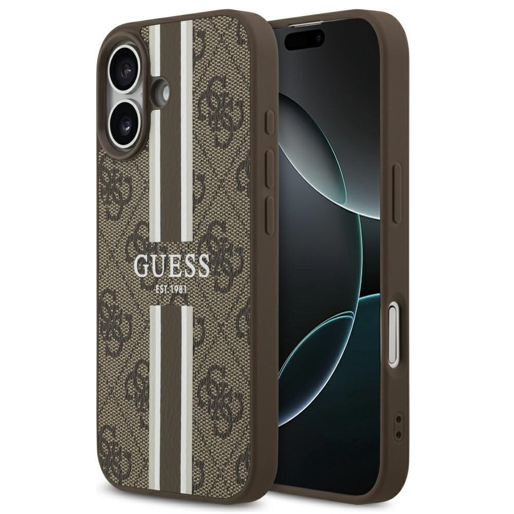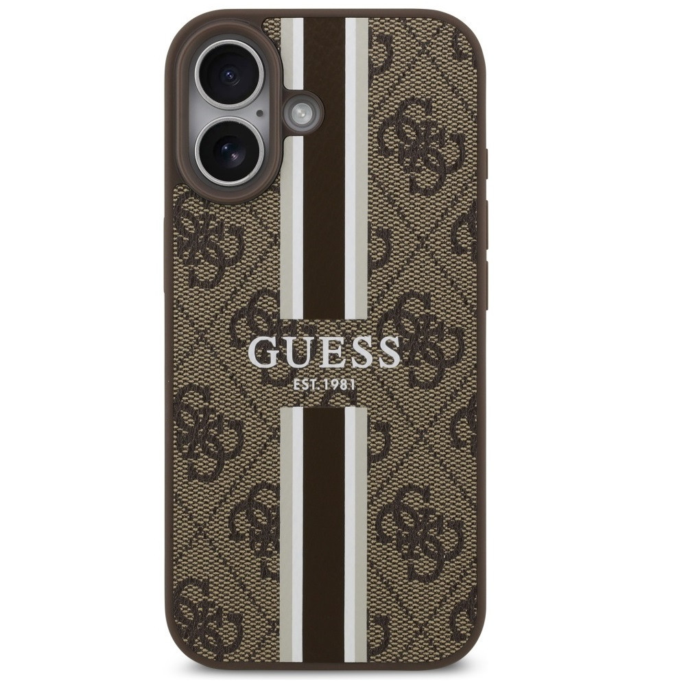 A tok középső részén a Guess logó és fehér csíkok találhatók, amelyek finoman hangsúlyozzák a tok presztízsét.
