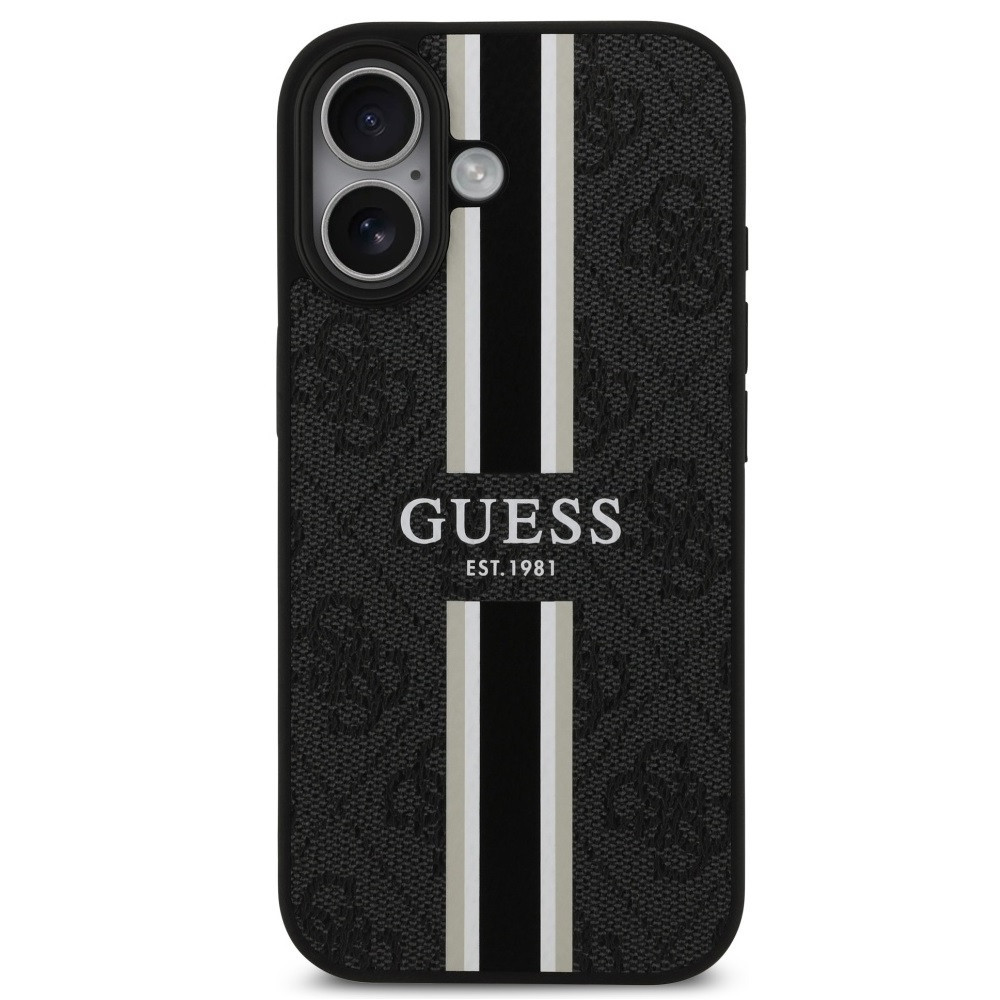 A tok középső részén a Guess logó és fehér csíkok találhatók, amelyek finoman hangsúlyozzák a tok presztízsét.