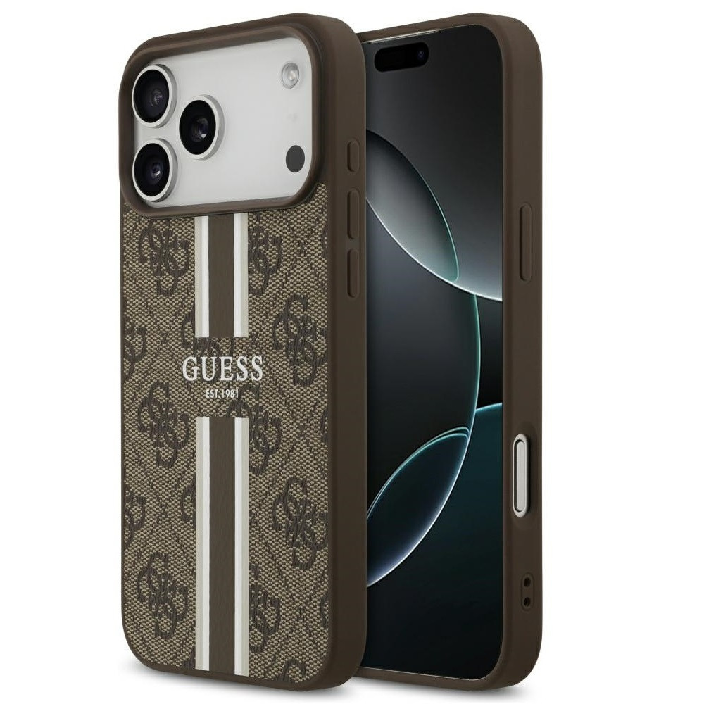 Guess 4G Printed Stripes Apple iPhone 17 Pro MagSafe hátlap tok, barna