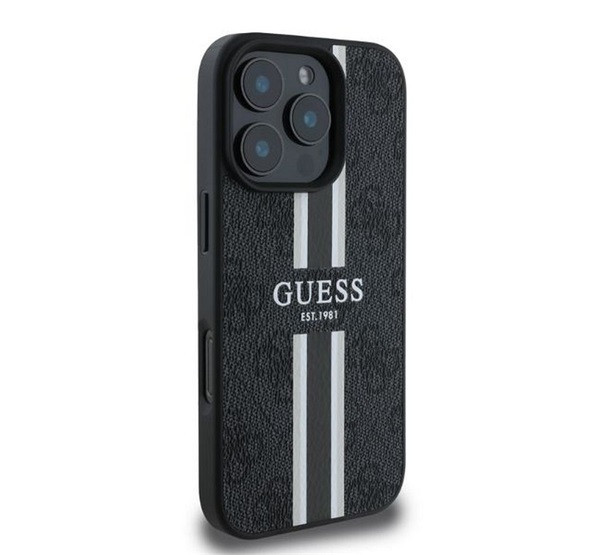 Guess 4G Printed Stripes MagSafe Apple iPhone 16 Pro Max hátlap tok, fekete/barna GUHMP16XP4RPSK