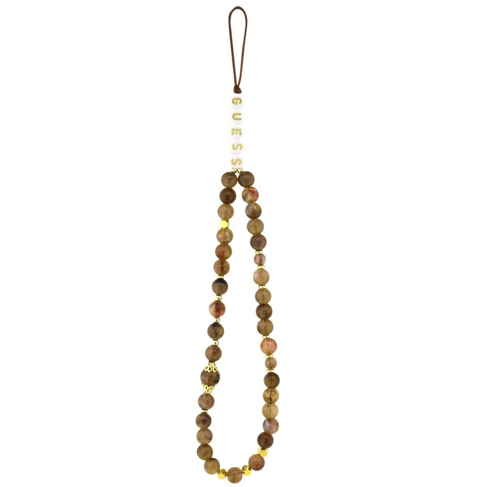 Az egész szettet ízléses gyöngyös pánt egészíti ki, amely tökéletesen illeszkedik a tok színvilágához. A gyöngyökön a „GUESS” betűk láthatók, így ez a kiegészítő nemcsak praktikus, hanem rendkívül stílusos is.