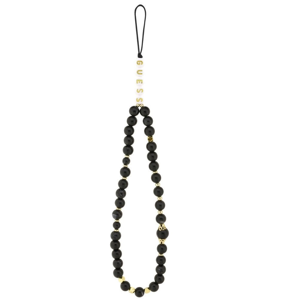 Az egész szettet ízléses gyöngyös pánt egészíti ki, amely tökéletesen illeszkedik a tok színvilágához. A gyöngyökön a „GUESS” betűk láthatók, így ez a kiegészítő nemcsak praktikus, hanem rendkívül stílusos is.