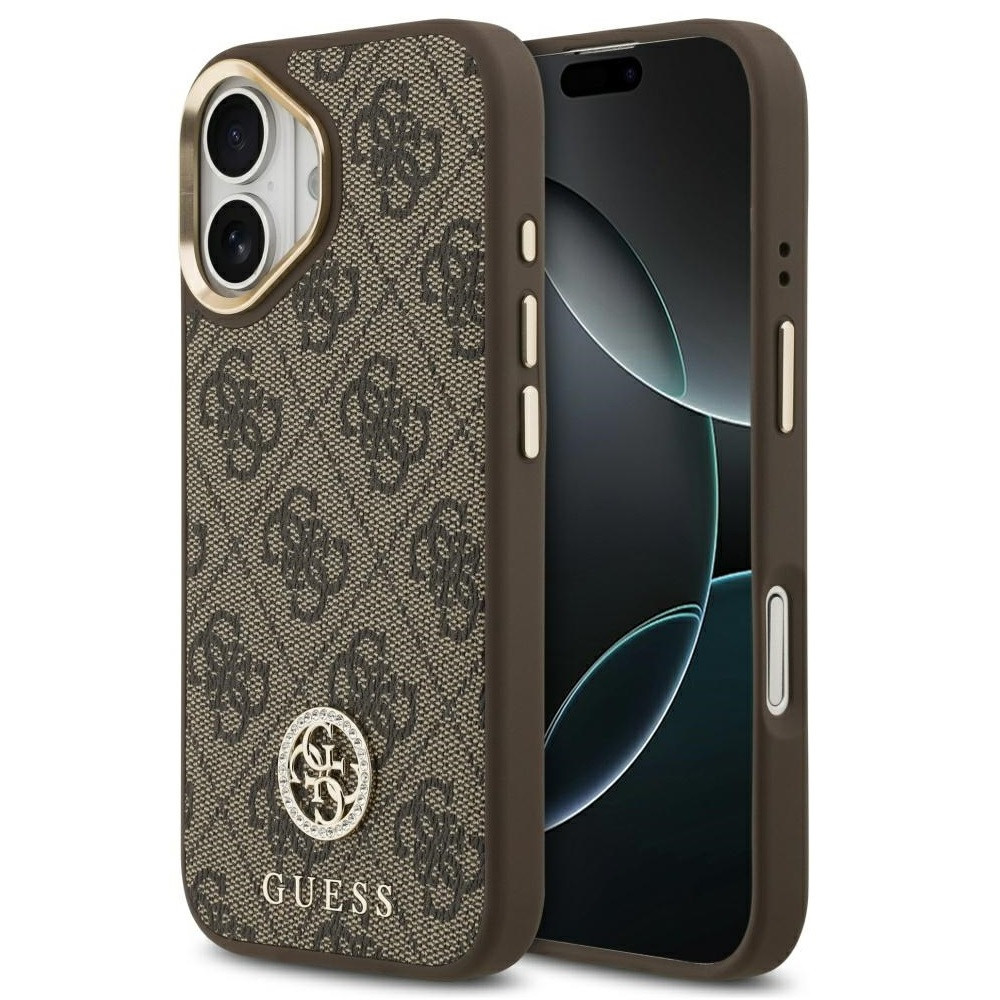 Guess 4G Strass Logo Apple iPhone 17 MagSafe tok kameravédő peremmel, barna-arany