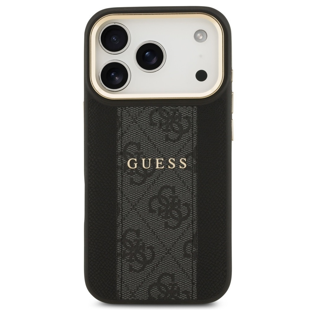 Guess 4G Stripe Apple iPhone 17 Pro Max MagSafe tok kameravédő kerettel, fekete-arany