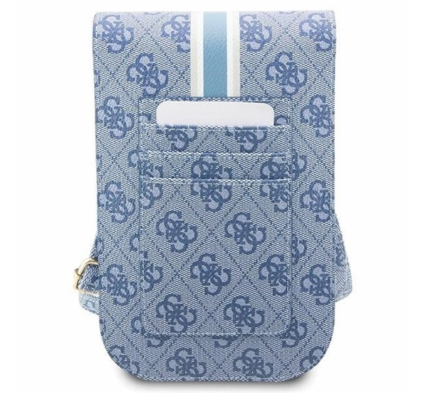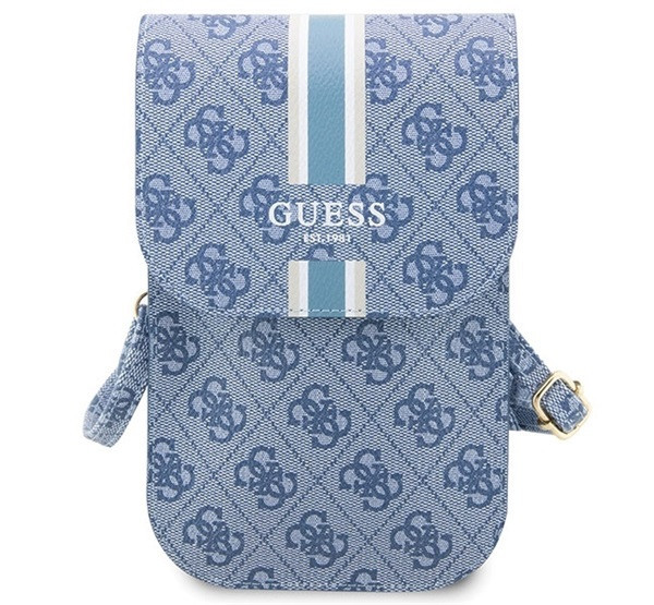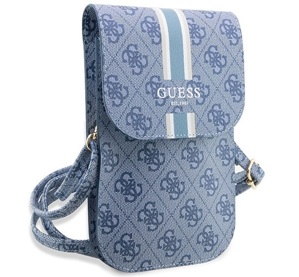 A Guess 4G Stripes kis táska kék színben, prémium minőségű anyagokból készült, és a híres Guess 4G logóval díszített. Stílusos és praktikus választás a mindennapi használatra, ideális a személyes tárgyak tárolására. A táska elegáns megjelenést biztosít, tökéletes kiegészítő bármilyen outfithez. Mérete: 17 cm x 10 cm x 2 cm
