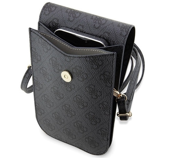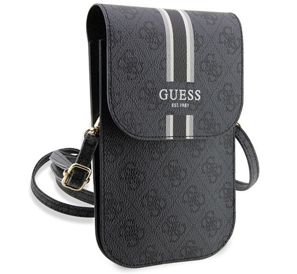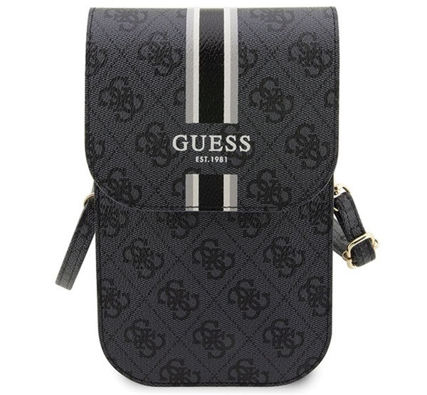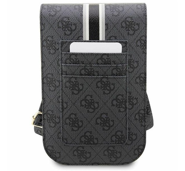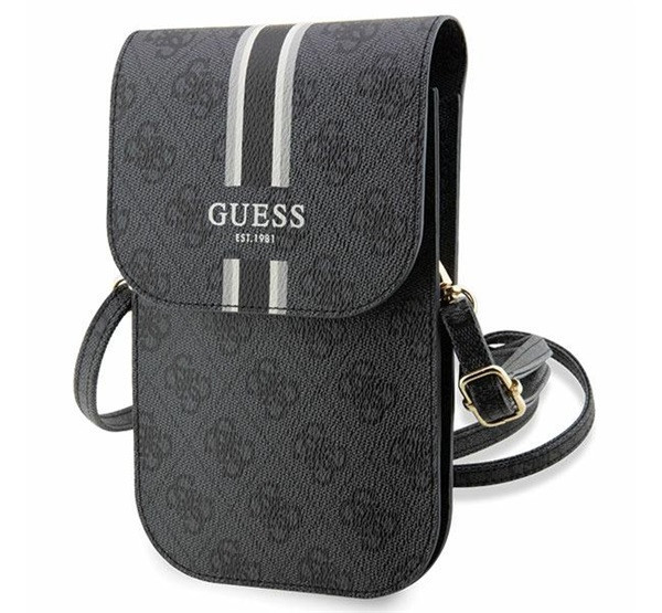A Guess 4G Stripes kis táska fekete színben, prémium minőségű anyagokból készült, és a híres Guess 4G logóval díszített. Stílusos és praktikus választás a mindennapi használatra, ideális a személyes tárgyak tárolására. A táska elegáns megjelenést biztosít, tökéletes kiegészítő bármilyen outfithez. Mérete: 17 cm x 10 cm x 2 cm